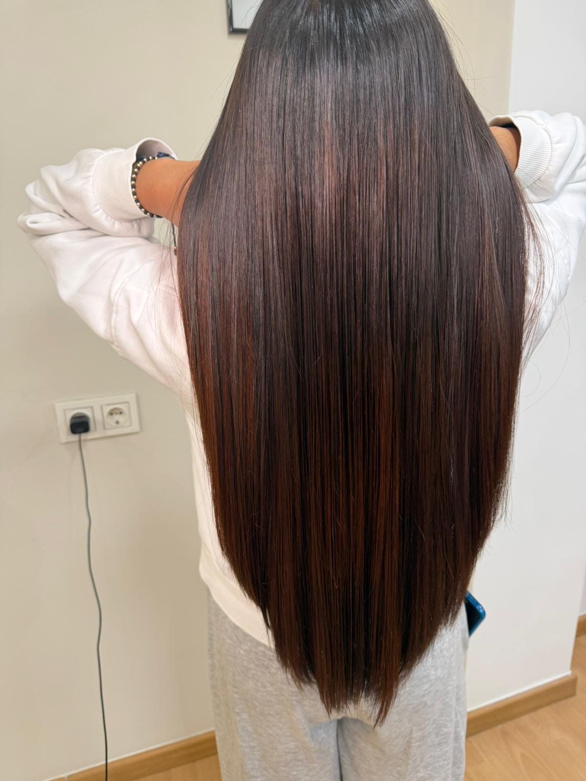 Dependiendo del tipo de cabello y el mantenimiento en casa, los resultados suelen durar entre 3 y 6 meses con un brillo espectacular.